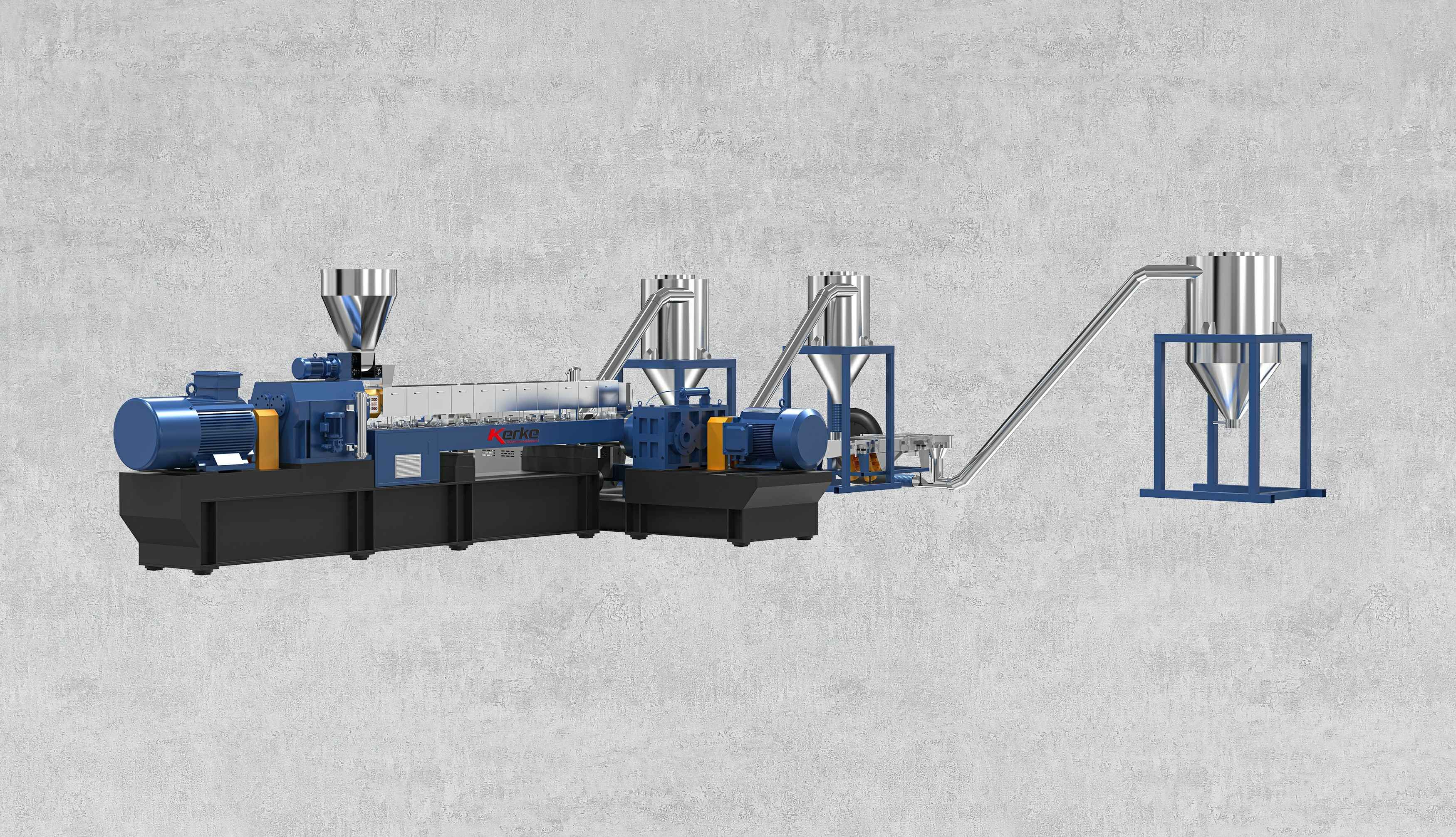 1.Main feeder | 2.Twin screw extruder | 3.Single screw extruder |